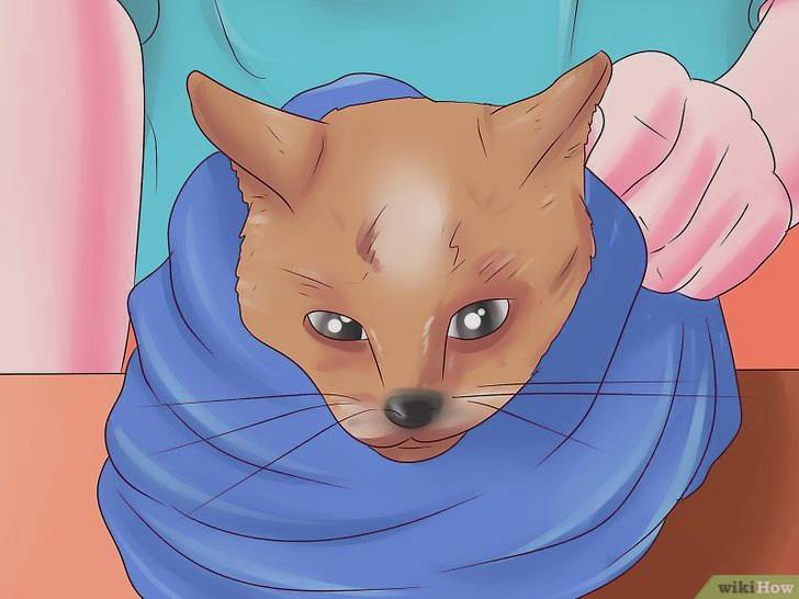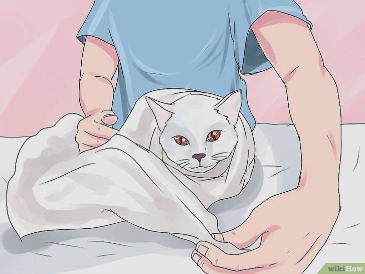 Dùng khăn để thấm khô cho chúng: Trước tiên, bạn có thể dùng khăn để thấm khô trước khi quấn khăn vào người chúng. Điều này sẽ hút bớt nước ẩm và giúp cho mèo không có cảm giác bị quấn trong khăn ướt. Chỉ cần nhẹ nhàng thấm khô mặt, cơ thể và bộ lông sẽ làm chúng cảm thấy thoải mái hơn một chút trước khi được đặt vào trong khăn. Một số người thậm chí dùng máy sấy tóc chỉnh nhiệt độ thấp nhất để làm khô mèo. Bạn cần phải làm điều tốt nhất cho chú mèo của bạn. Một số thích máy sấy và một số khác cảm thấy khiếp sợ. Nếu mèo con của bạn thích máy sấy tóc, thì bạn có thể cài đặt nhiệt độ thấp nhất và nhẹ nhàng sấy khô bộ lông giống như đang sấy tóc, hãy chú ý chăm sóc để bé mèo không bị hoảng sợ.